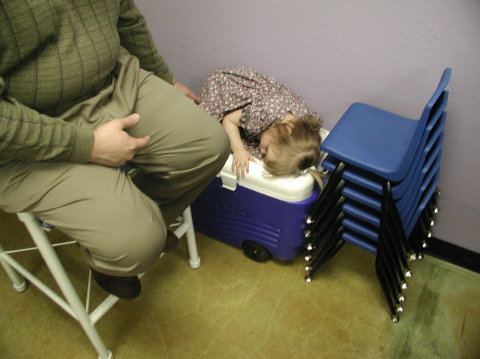 Korie sleeps on cooler
